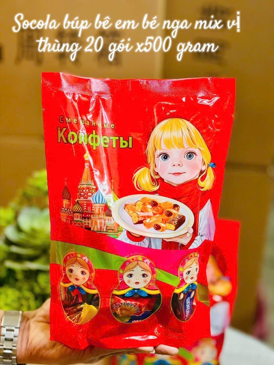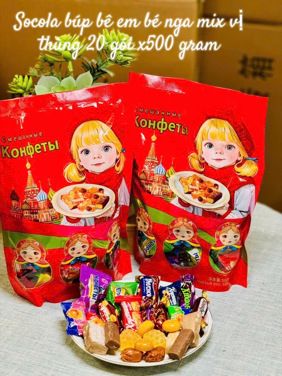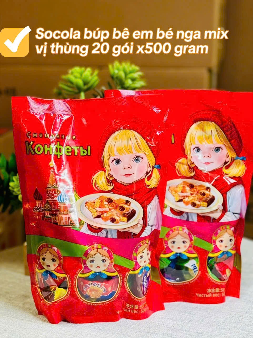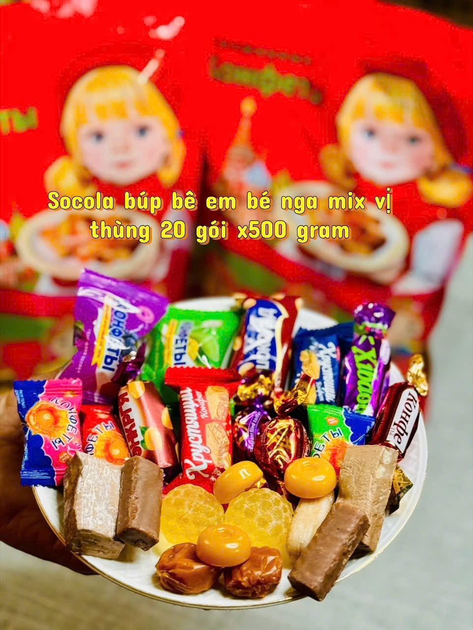 Mỗi gói 500g gồm nhiều loại kẹo – socola – caramel – nhân trái cây – nhân sữa… mix đủ hương vị, ăn là ghiền luôn nha!