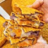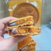 Hương vị độc đáo: Bánh nướng Trung Thu khổng lồ được làm từ những nguyên liệu cao cấp, với lớp vỏ bánh nướng vàng ươm, giòn tan. Nhân bánh là sự kết hợp hài hòa giữa mochi dẻo mịn, khoai môn thơm bùi, trứng muối mặn mà và chà bông đậm đà, tạo nên một hương vị phong phú, lôi cuốn.