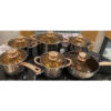 Ưu điểm :- Bộ nồi tráng men vàng cao cấp sang trọng- Chất liệu inox cấp không gỉ an toàn tuyệt đối cho sức khỏe. Chất liệu inox được cấu tạo từ thành phần 18/10 trong đó 18% Crom và 10% Niken. Với các thành phần này giúp cho bề mặt nồi trơ cứng với thức ăn và môi trường,vì vậy không thôi nhiễm chất độc hại