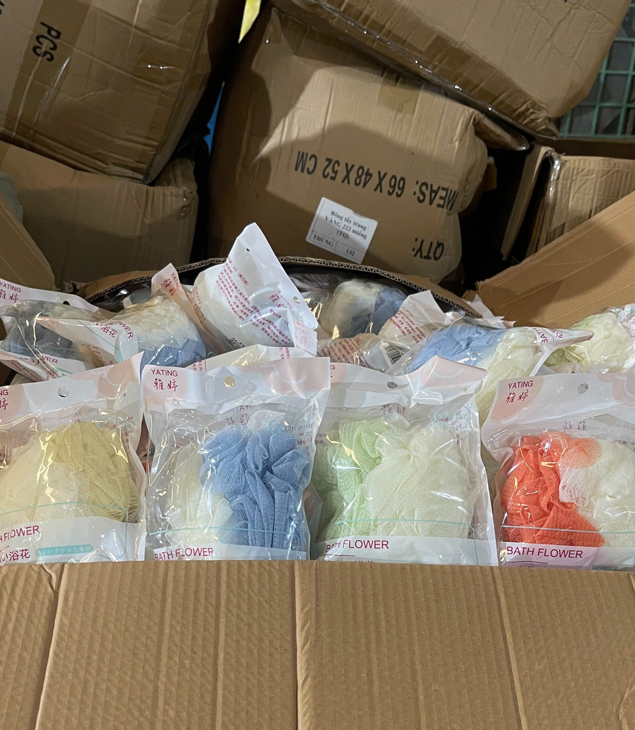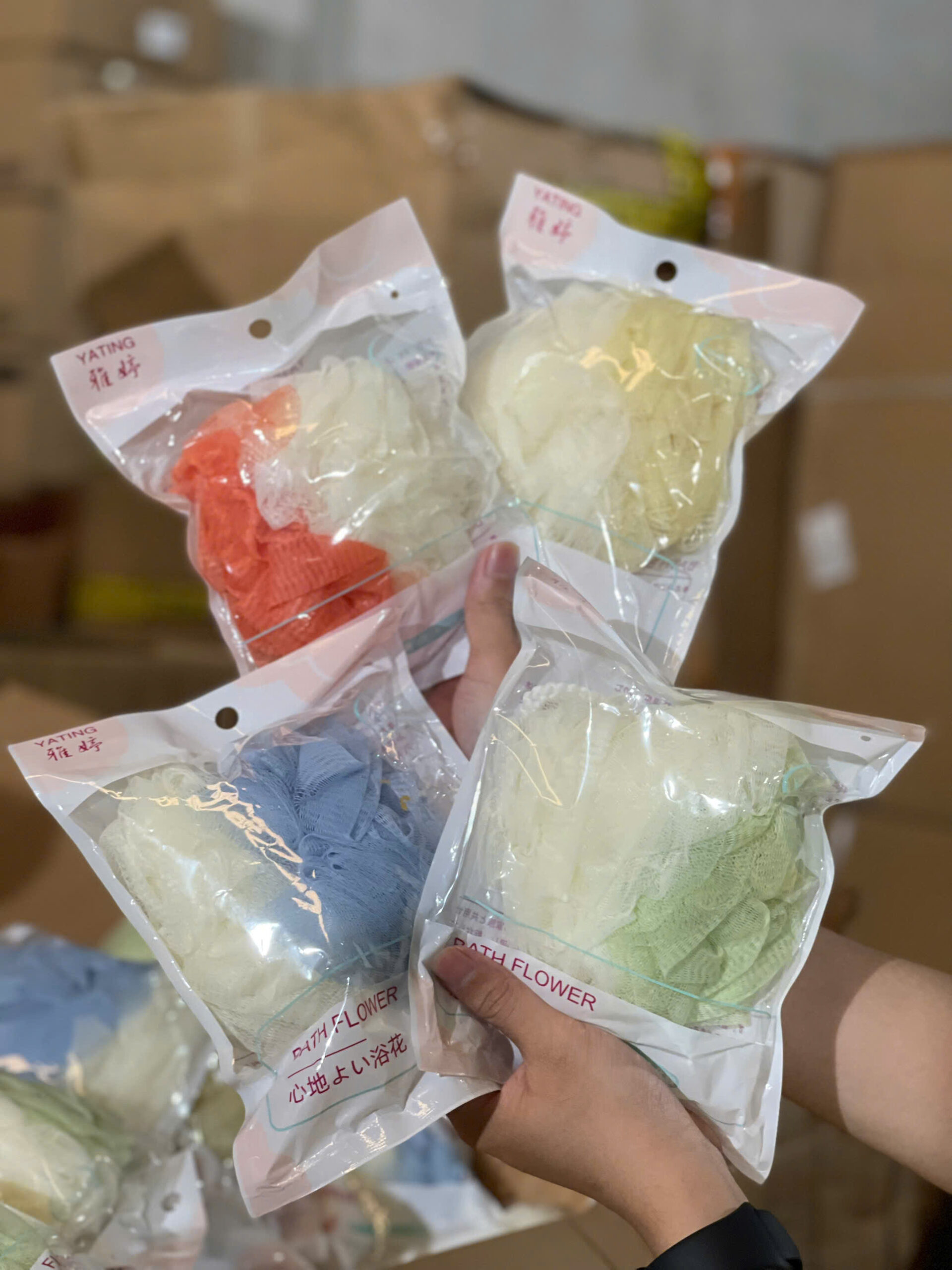 Mát xa bông tắm lên người để tạo bọt và tắm sạch làn da.