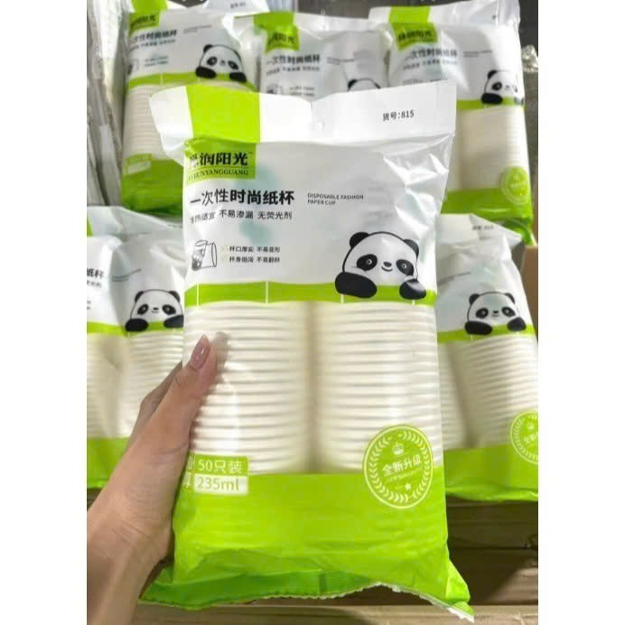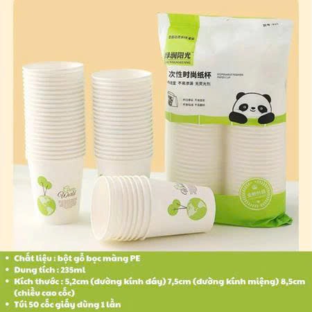 Cốc giấy dùng 1 lần, set 50 cốc giấy, ly giấy chịu nhiệt 235 ml an toàn dùng uống nước, trà, cafe