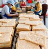 Quy trình chế biến: Sau khi gạo nếp đã được tán mỏng và đều, người làm sẽ đặt lên vỉ nướng và đặt lên bếp hoặc lò nướng. Bánh sẽ được nướng ở nhiệt độ cao cho đến khi bề mặt trở thành màu vàng nâu và giòn. Quá trình nướng là quan trọng để tạo ra sự giòn và hương vị đặc trưng cho cơm cháy Kim Tiến Vua.
