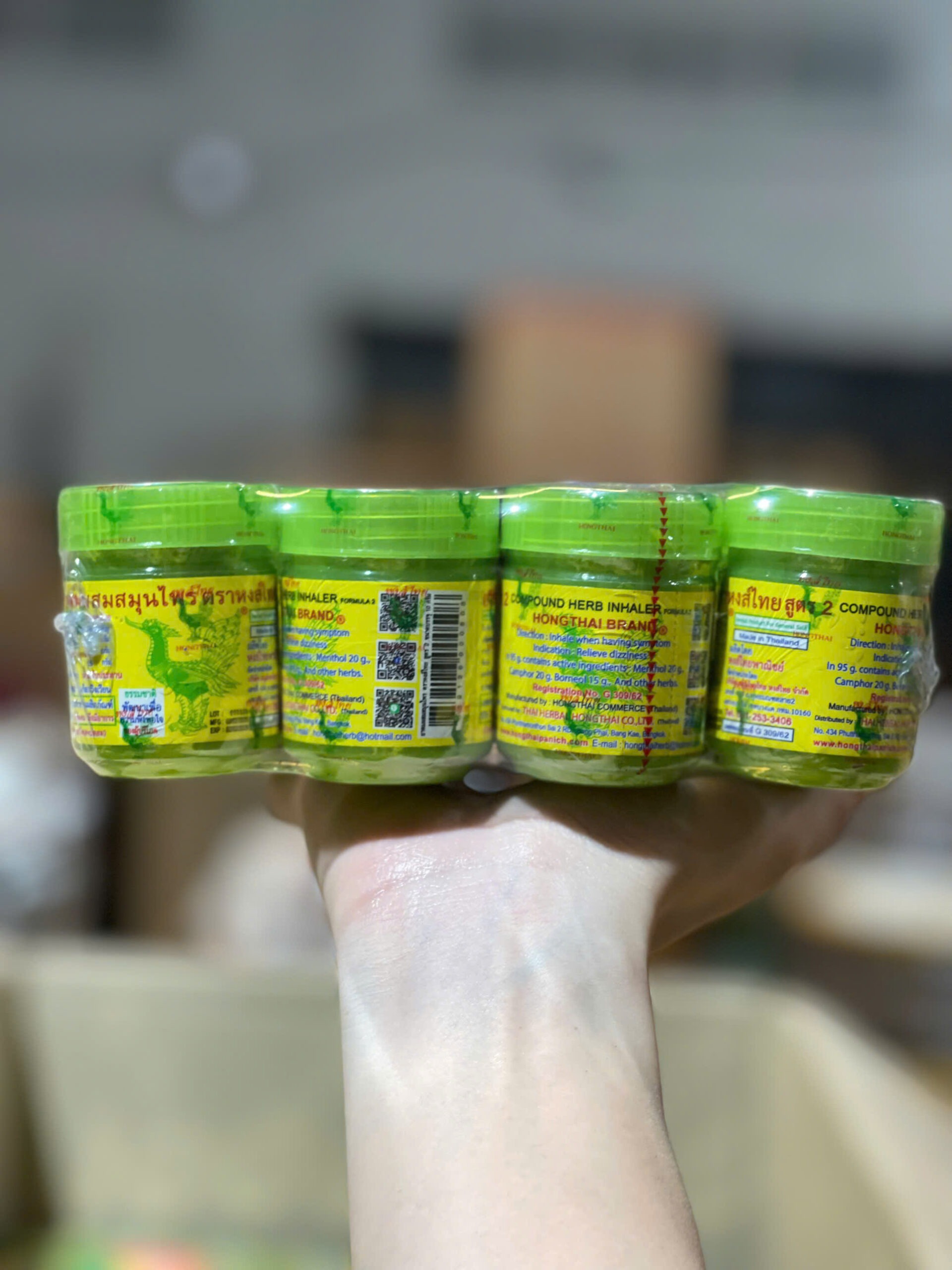 Hũ hít mũi thảo dược Hong Thai xuất xứ Thái lan , được chiết xuát từ 15 loại thảo dược và tinh dầu tự nhiên của thái lan , giúp người sử dụng cảm thấy dễ chịu , giảm nhức đầu , chảy nước mũi , cảm sốt, chóng mặt, chống nghẹt mũi, thư giãn.