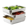 » Set hộp inox đi kèm với nắp nhựa khít kín, giúp ngăn chặn sự tiếp xúc của không khí và vi khuẩn từ bên ngoài, từ đó bảo quản thực phẩm tốt hơn và ngăn ngừa sự mất màu, mất mùi và mất chất dinh dưỡng.