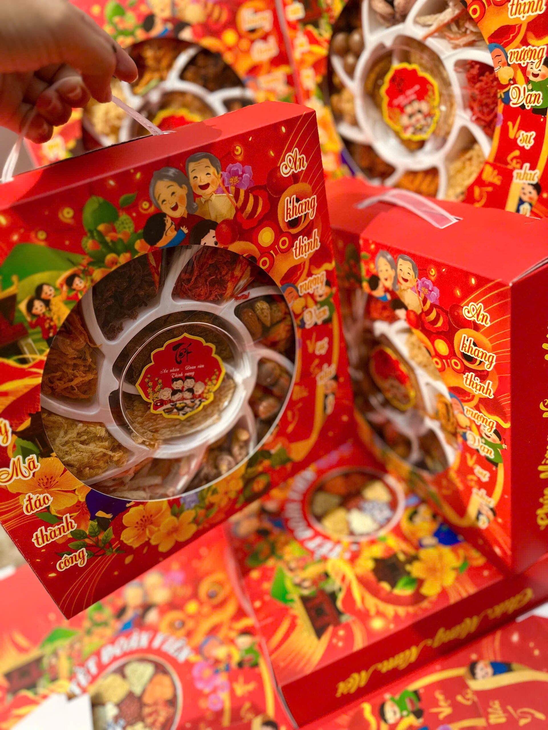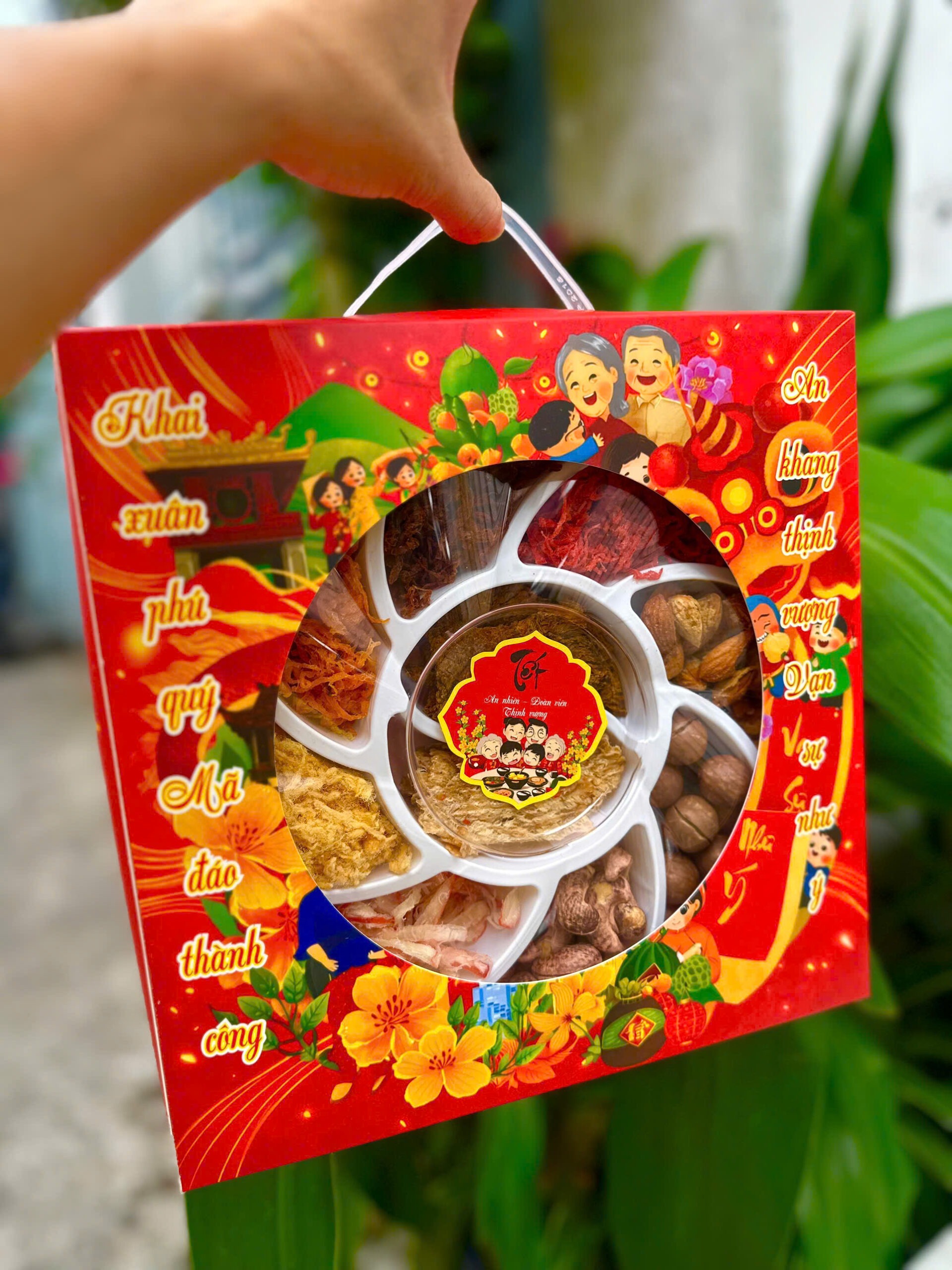 Khay chia nhiều ngăn tiện lợi, nhìn là thấy không khí xuân liền