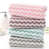 – Khăn Mặt Lông Cừu Xuất Hàn Vân Kẻ Sọc từ chất liệu sợi vải bông mềm mịn, siêu mềm, không bị xù lông, không phai màu