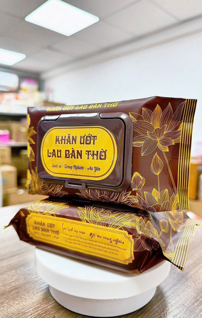 – Xé Khăn bao sái lau tượng phật, bài vị, bát hương và các vật dụng thờ cúng trên ban thờ rùi mới đến bề mặt ban thờ (tuỳ ban thờ to hay nhỏ, tuỳ mật độ thường xuyên lau dọn có thể hết từ 1-3 chiếc khăn)