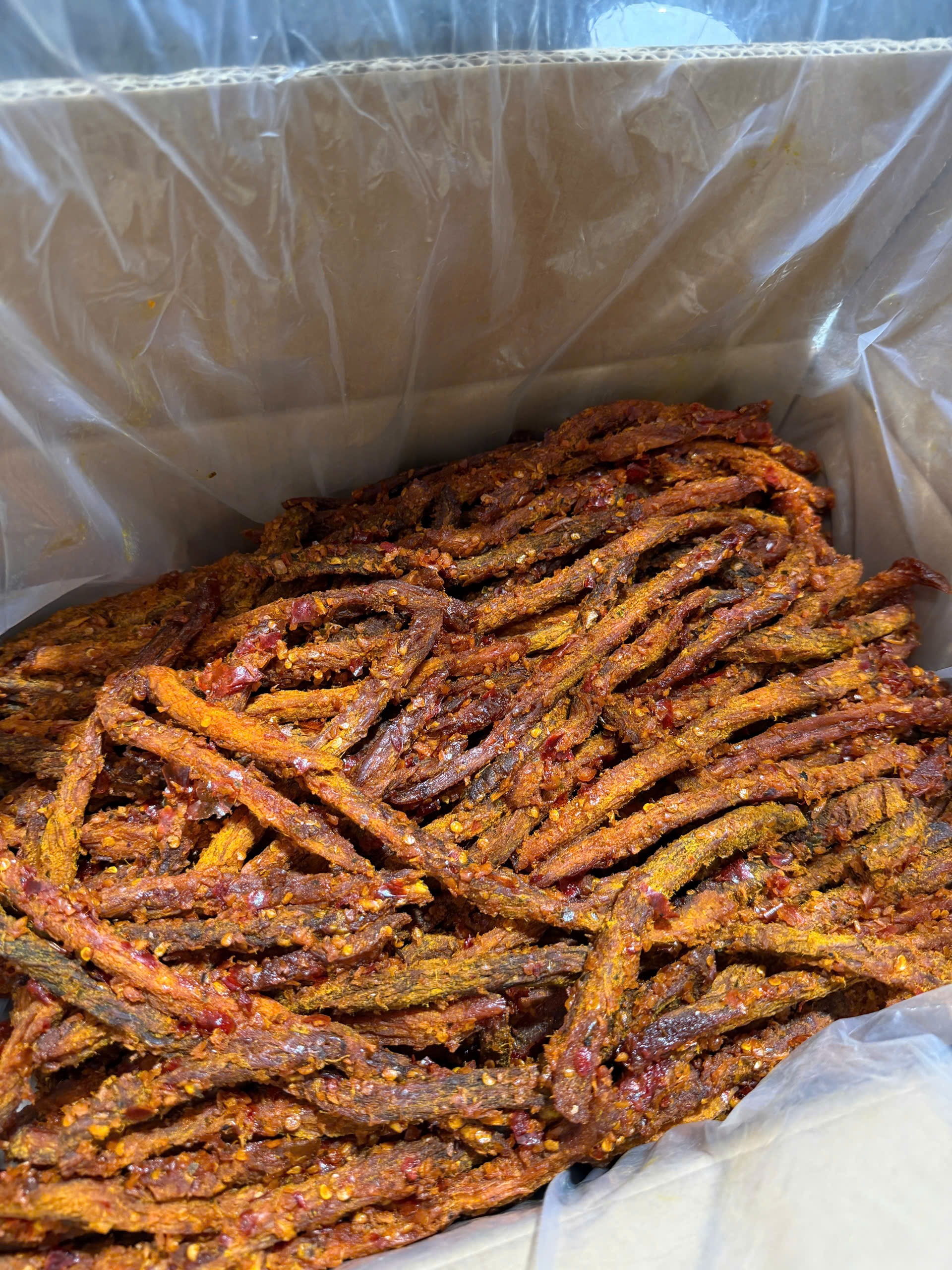 – Khi ăn khô bò sẽ cảm nhận được vị thịt tươi ngay từ miếng đầu tiên, đảm bảo 100% khô bò chuẩn nha,vị cay mềm ngon trên từng miếng.