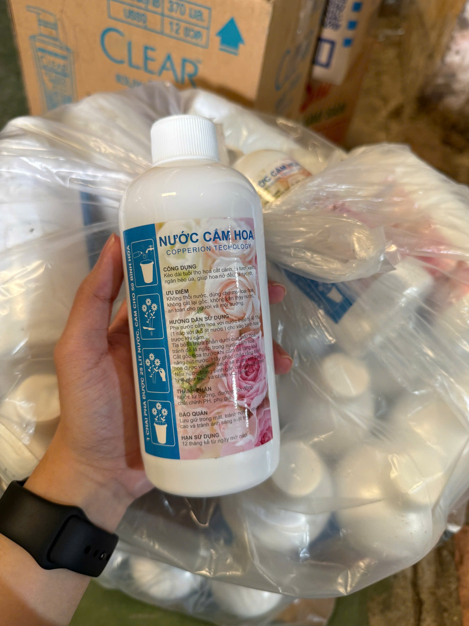 – Pha 1 nắp (hoặc khoảng 10–15ml) nước cắm hoa vào 1 lít nước sạch.