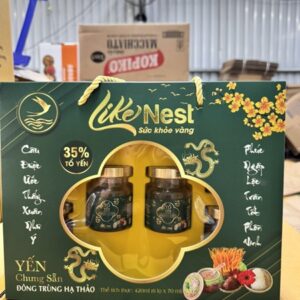 Yến Sào Chưng Like Nest Màu Xanh Lá Cây Đông Trùng Hạ Thảo Hộp Lớn Xách