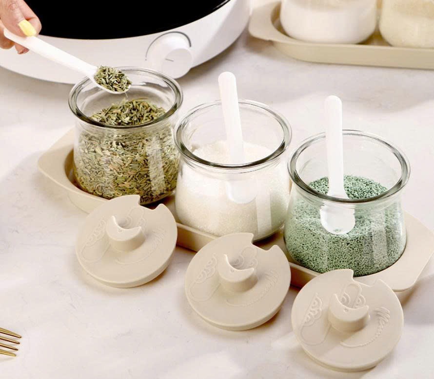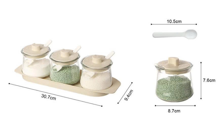 Set 3 Lọ Gia Vị Thủy Tinh Kèm Khay 900ml (Thùng 24 Bộ)